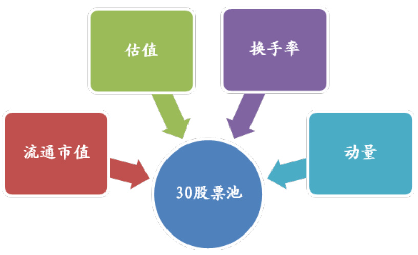 - 通过流通市值、估值、换手率、动量四因子打分进一步筛选股票池,形成30只核心成分股,提升组合精度。