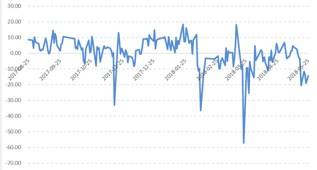 - 描述:价格差自2017年8月至2018年5月的波动,近期大幅贴水约14.49点。