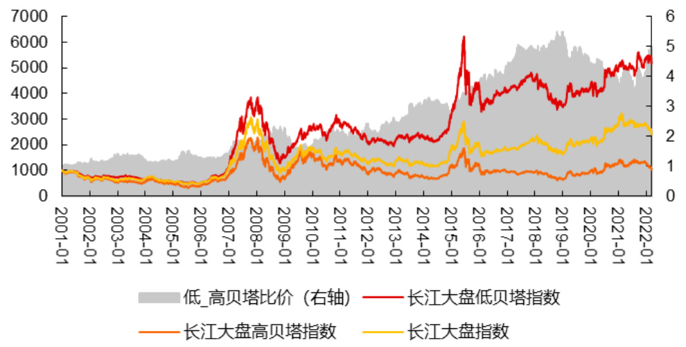 图 4:长江高贝塔指数、长江低贝塔指数净值走势(page::9)