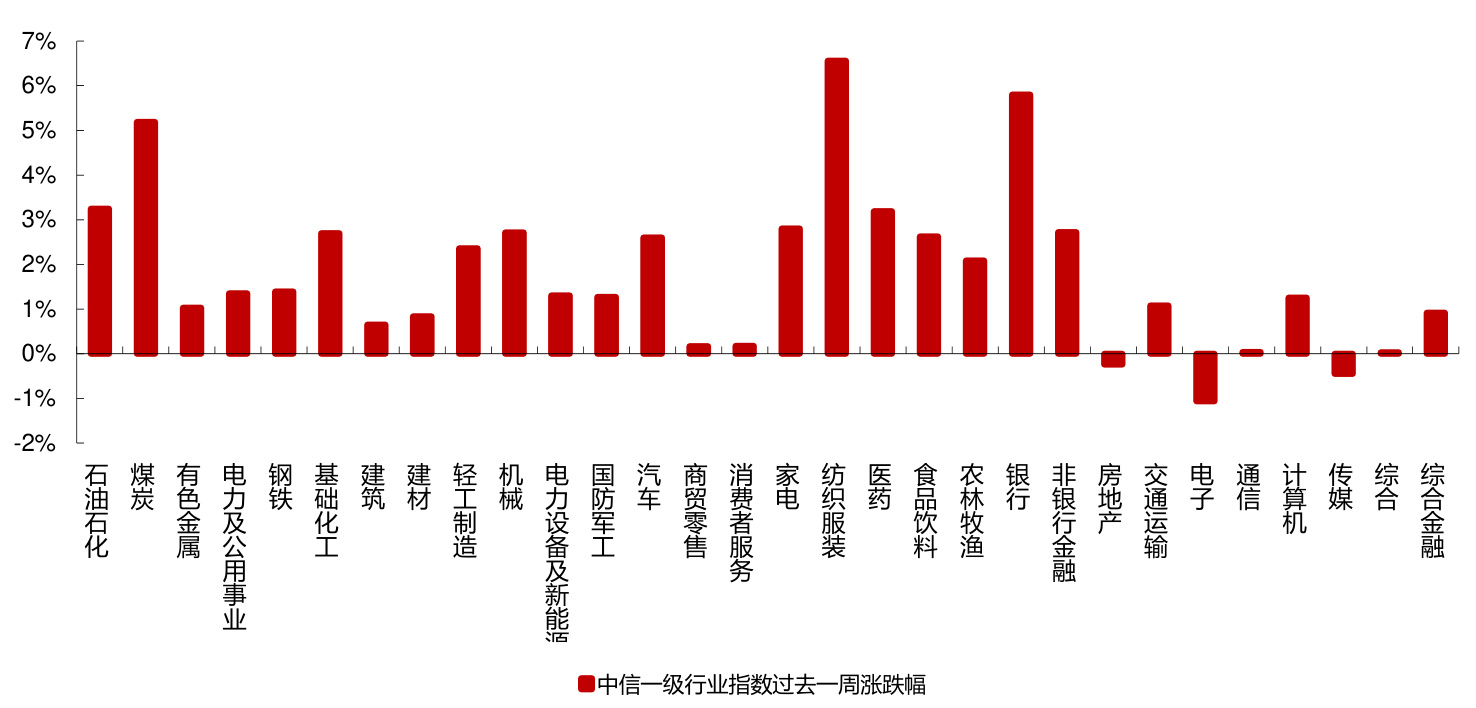 - 周期性行业涨幅有限,钢铁2.70%、基础化工2.70%表现相对较好。