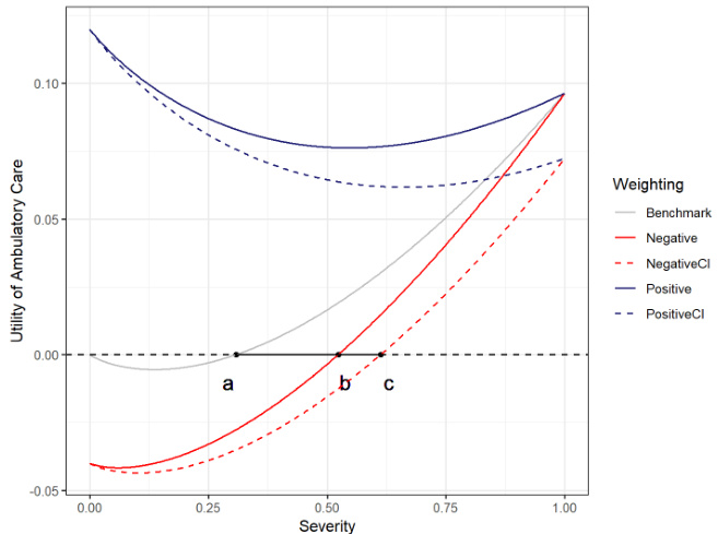 - 图3展示$\gamma$权重不同患者对门诊效用随疾病严重度的变化,正权重患者轻症即有较高效用,负权重患者则是重症才能驱动门诊使用。