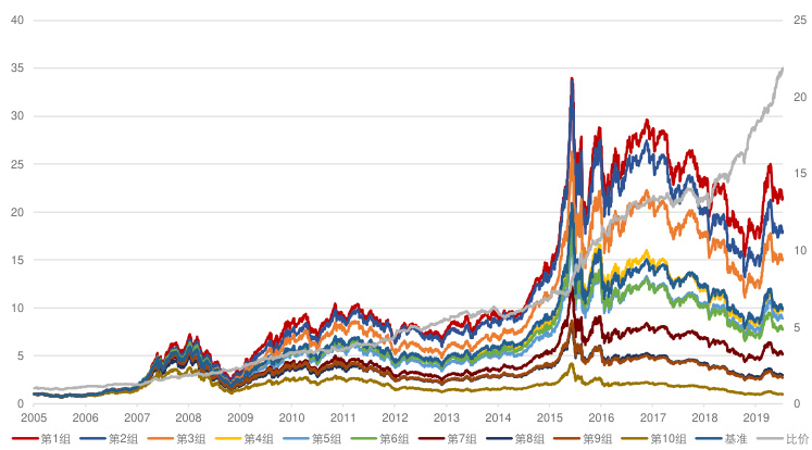 - 图2同样展示中证800内净值,涨幅较全市场低,但第1组依旧表现突出。此分组线性和净值增长体现因子优秀的选股能力和风险控制[page::6]。