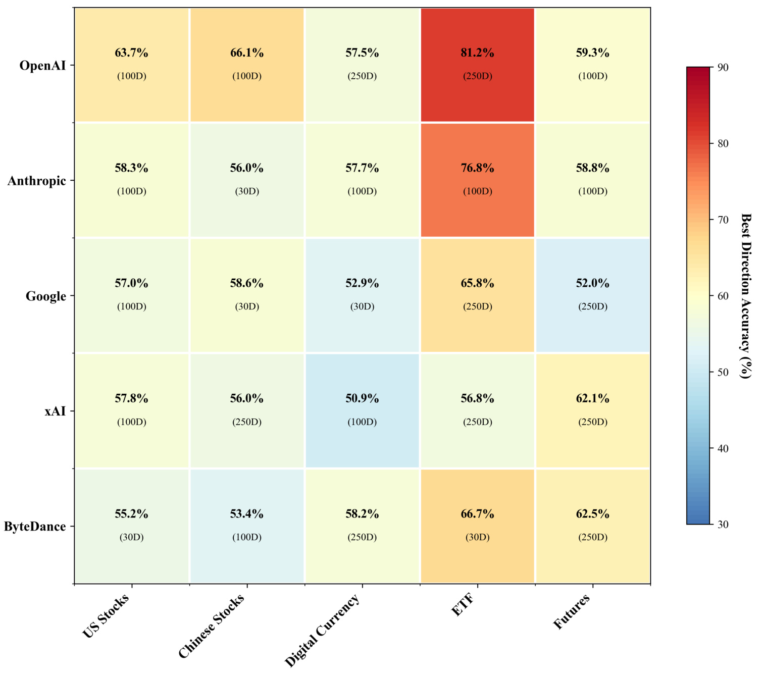 - GPT-o3模型在100天分析期和90天预测期表现最优,方向准确率达60%+。