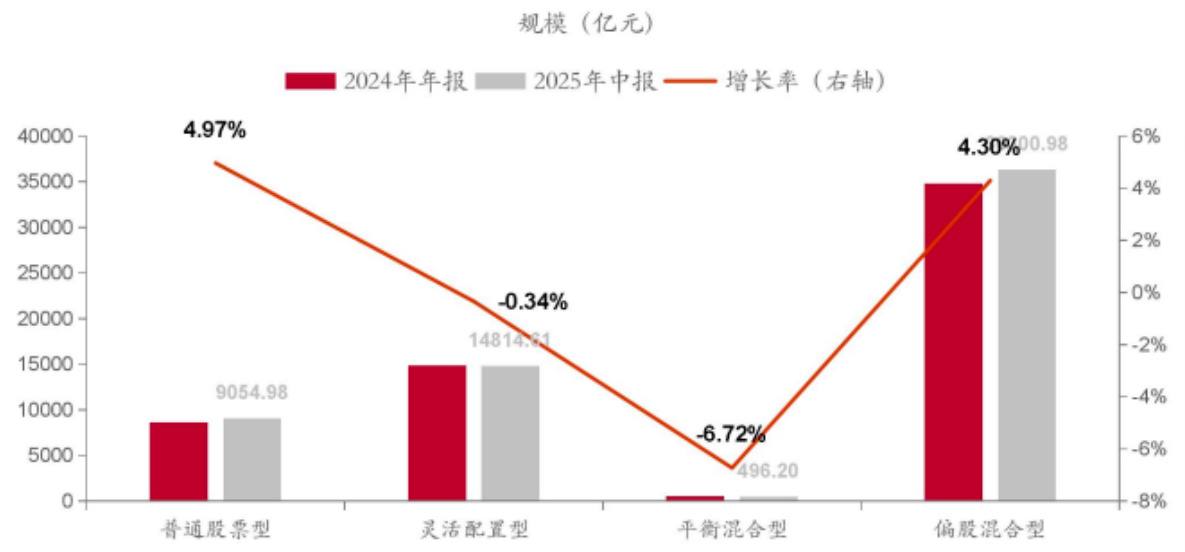 - 普通股票型和偏股混合型基金规模均增长约5%,表明市场资金倾向于更纯粹的权益露出。