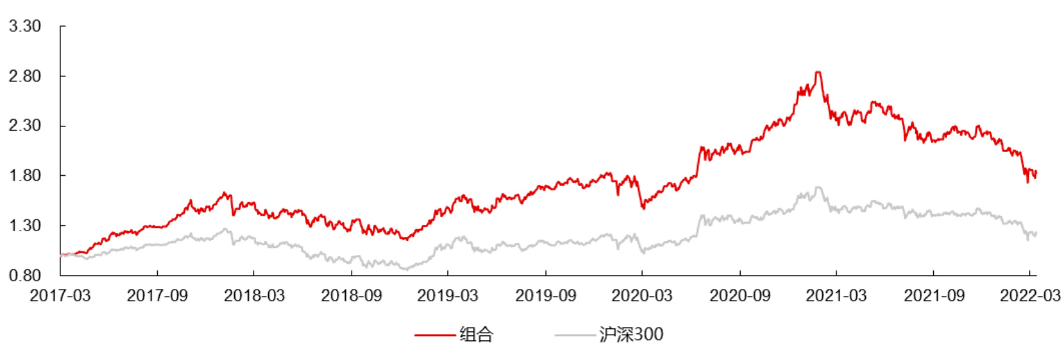 - 显示过去近20年长期优于沪深300,但2022年一季度明显示策略跌幅大幅拉近基准。