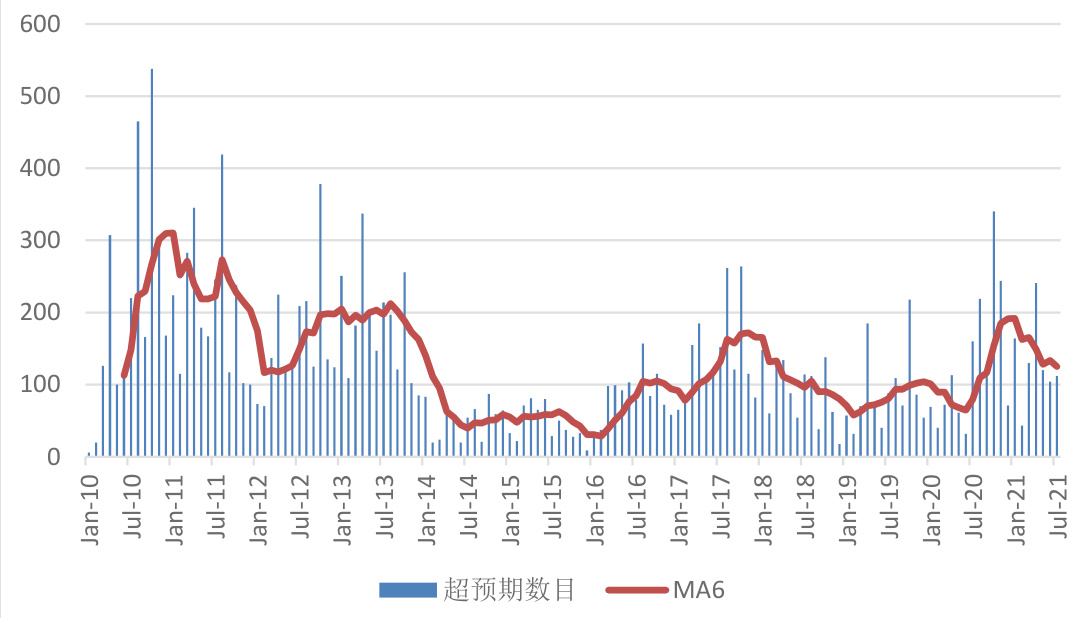 - 该数据基于自2019年以来的65242条超预期记录统计。