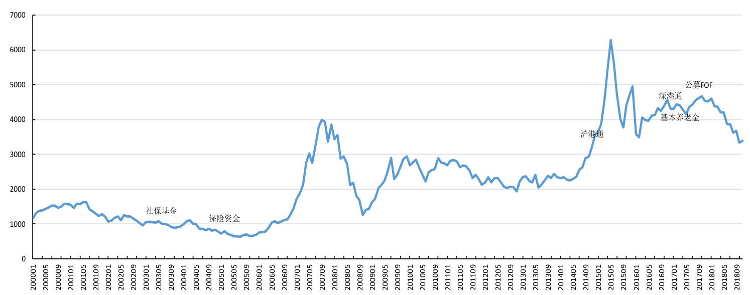 长期看,机构投资者比例偏低(约40%),未来有较大提升空间,且本轮养老基金和银行理财入市的短期预期明显。图2显示历次重要资金入市节点(社保基金、保险资金等)与市场表现的共振,进一步支持资金流入推高股价的逻辑。报告借鉴2017年美股数据,强调美国市场机构投资比例高达61%,且涵盖多元资金来源,暗示A股机构比例提升空间及可能的增量资金冲击。