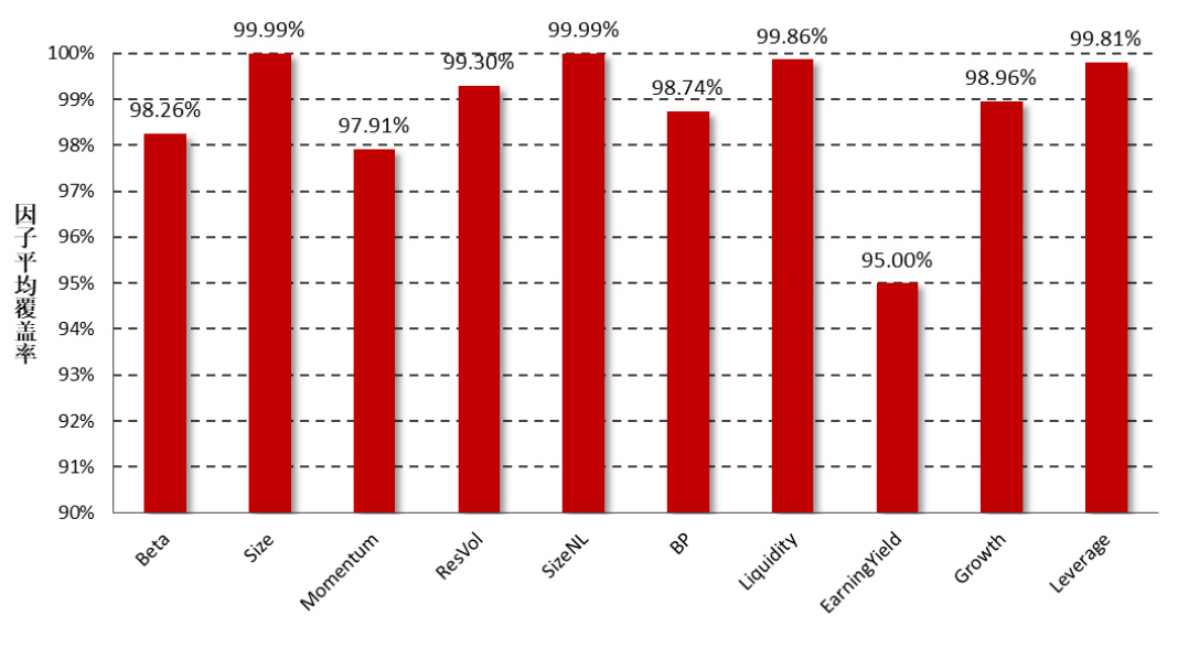 - 多因子模型覆盖Beta、规模、动量、波动性等10大类因子,整体覆盖率均高于95%,其中价量因子覆盖优于财务因子。