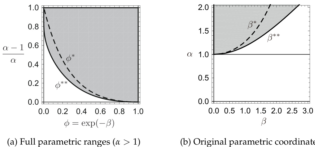 - 随$\alpha$增大(聚集效应增强)和$\phi$增大(购物成本降低),空间零售趋向全聚集。