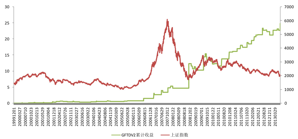 - 2000年至2013年期间,83次信号,年均6.3次,胜率51.8%,单次获胜均收益14.1%,亏损均幅-4.4%,盈亏比3.19,最大回撤-23.5%。