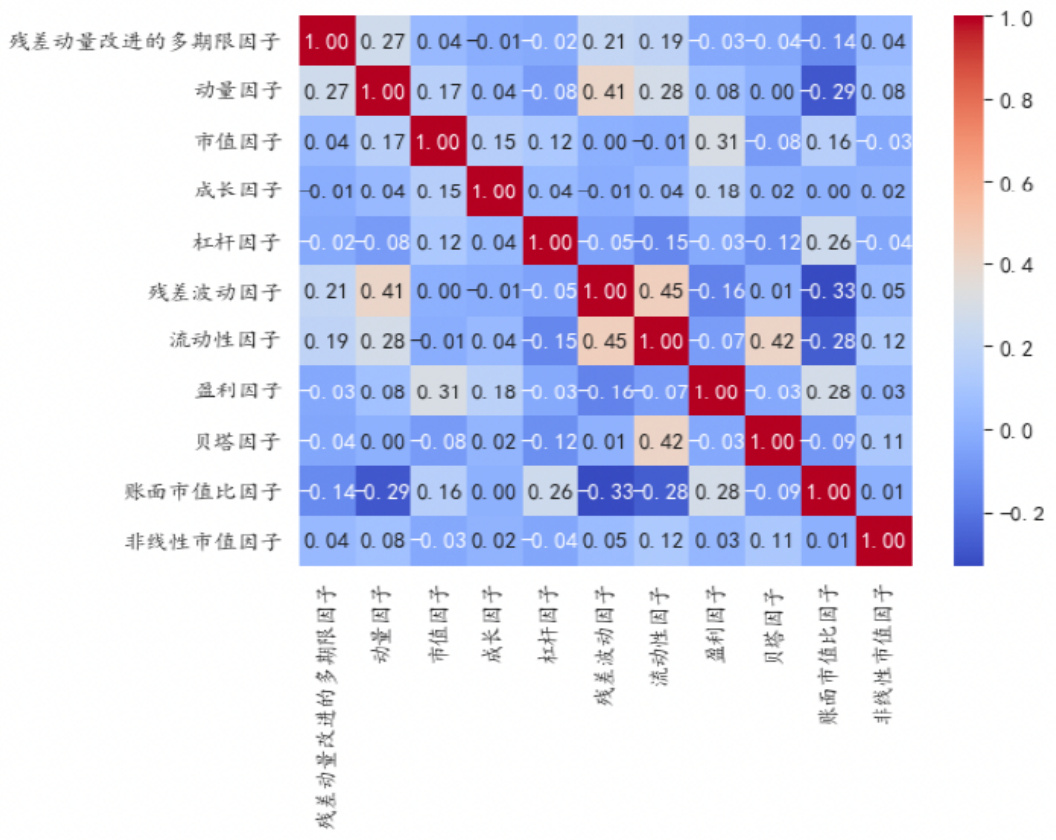 - 改进因子与Barra主要因子相关性低,最大相关仅约0.27(动量因子)。