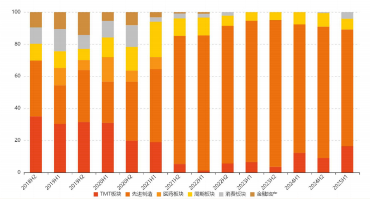 - TMT板块配置逐步降低,2025H1仅16.41%;