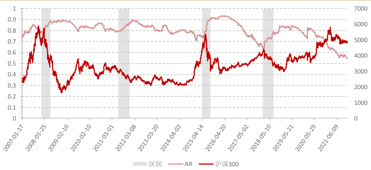- AR和沪深300指数走势呈明显反向变动,AR快速上升对应市场大幅下跌。