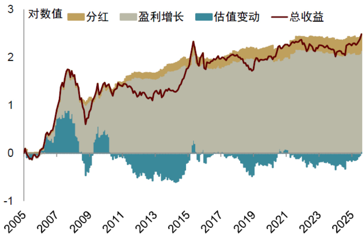 - 货币变局使股市估值提升明显,特别是2024年9月至2025年8月估值贡献超过盈利贡献。