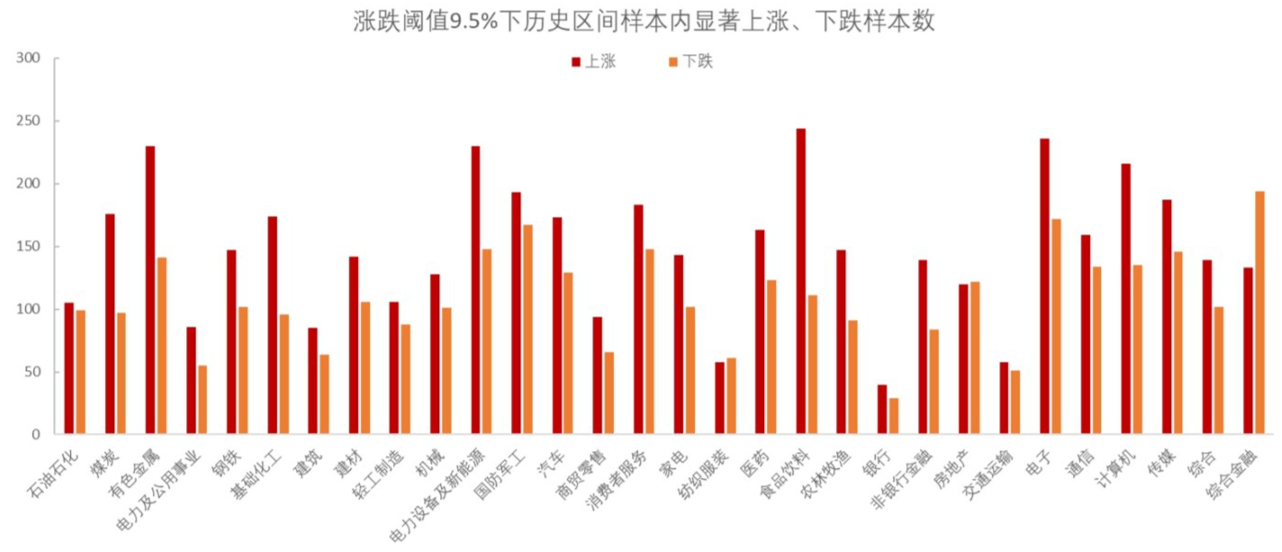 - 历史显著涨跌样本数均充足(多行业超过50个样本,部分行业超过200),支持统计显著性(图4)。