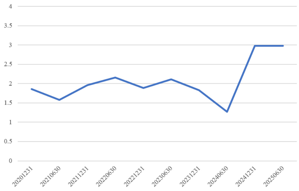 - 加权债券久期(图8)从2022年的约2年逐步提升到2025年3年,表明较积极的期限管理策略。