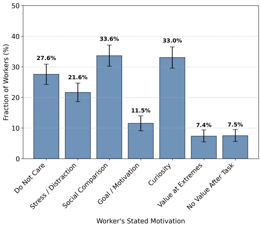 - 开放式文本证实偏好背后的动机。根据工人陈述,动机与行为紧密相关。