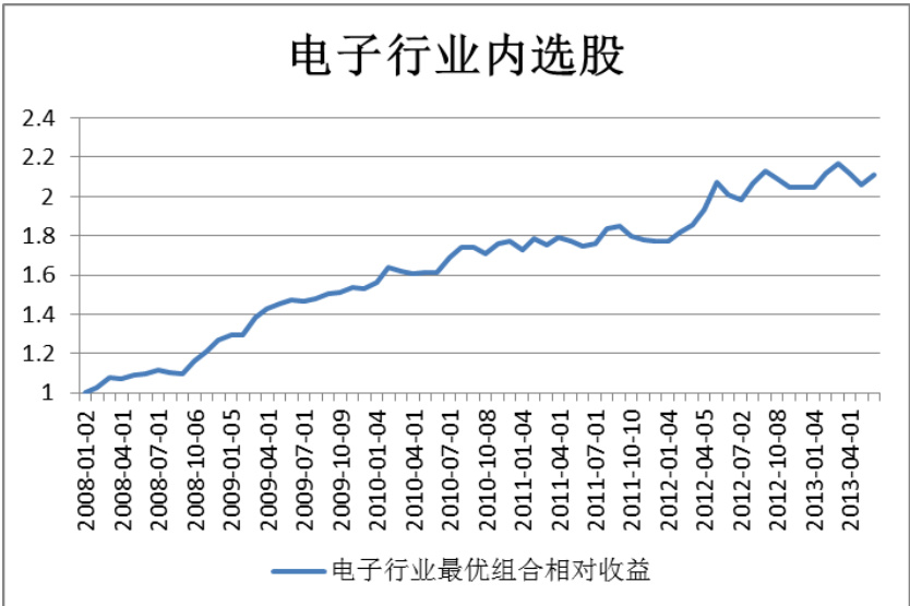 - 例如,图1“金融行业内选股”显示2008年至2013年该组合净值从1提升至约2,近乎翻倍。