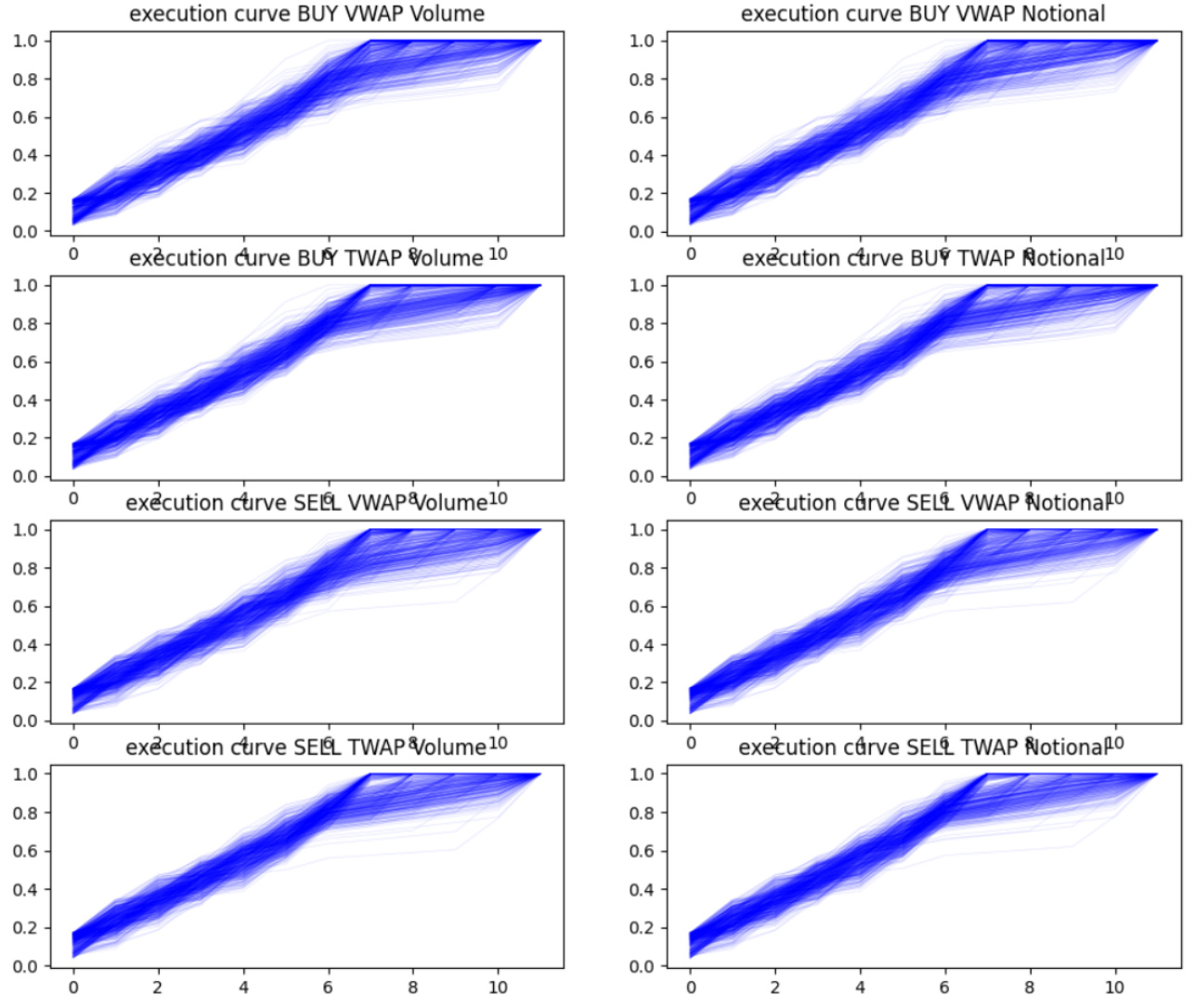 - 执行曲线分析显示灵活时间执行时,买单趋向于尽早执行,卖单更倾向于后期逐步完成,符合市场上涨趋势。