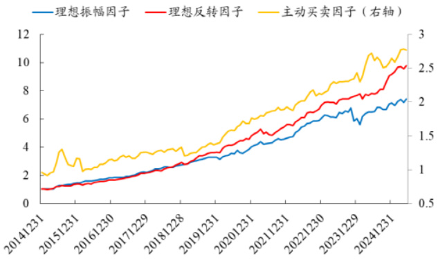 - 理想振幅因子:基于高低价态不同的振幅均值差,反映股票在高价和低价区间的波动差异,挖掘振幅信息隐藏结构。