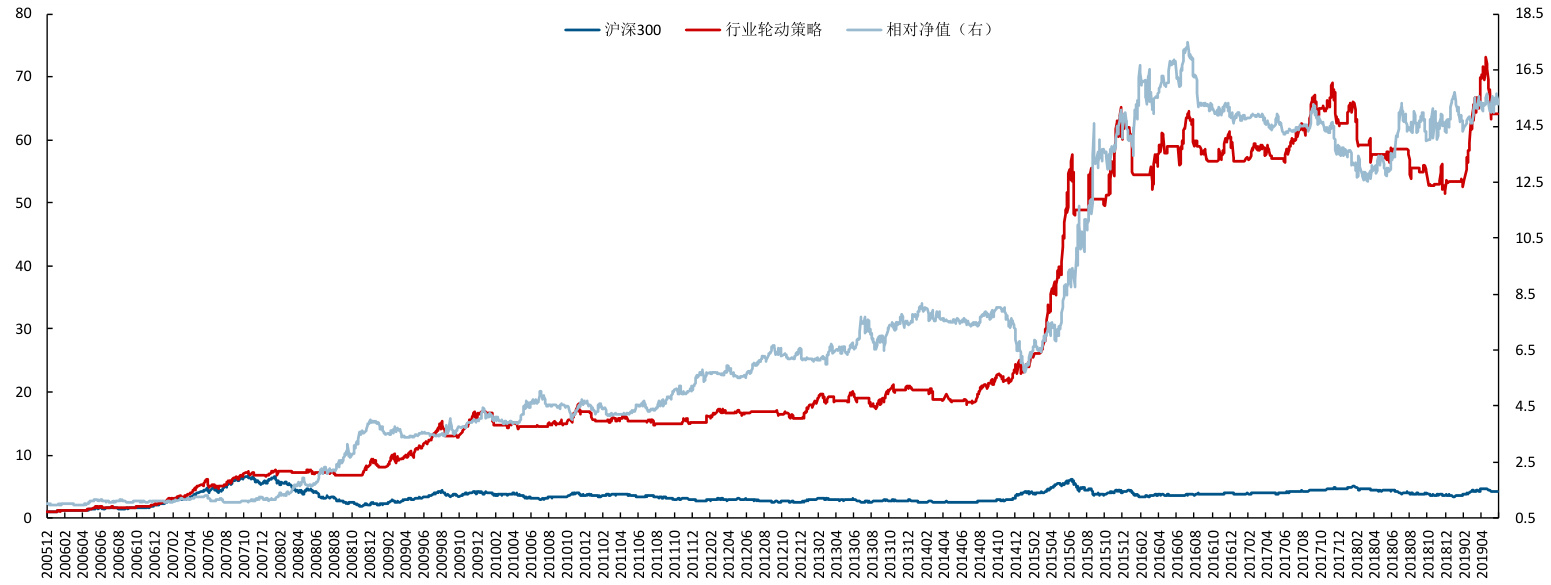 显示策略年化超额收益显著,强调基于行业强弱转换择时的有效性。