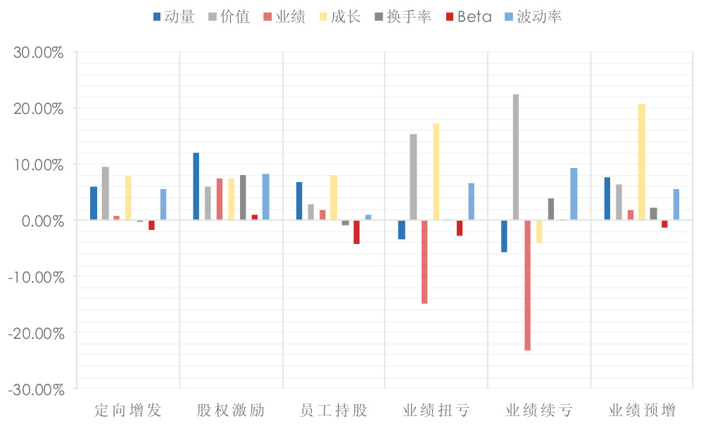 | 事件类型 | 动量 | 价值 | 业绩 | 成长 | 换手率 | Beta | 波动率 |