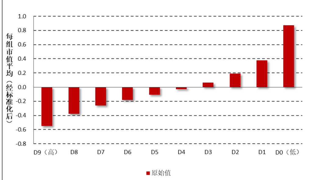 - 图9:经过不同处理后十分组中每组市值均值比较