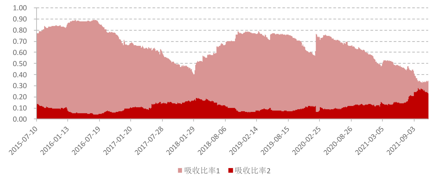 - 总吸收比率与沪深300指数呈负相关,前者反映系统性风险水平。