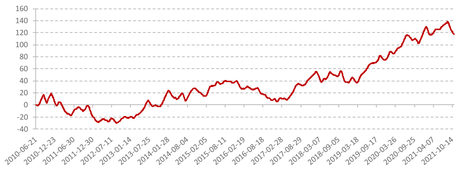 图9(2017年以来)显示相对估值IC累计明显上行,说明近年估值与收益正相关关系强化;图10(2008-2021年)曲线虽波动但整体呈上升,验证相对估值指标作为有效预测因子的长期稳定性和参考价值。[page::10,11]
