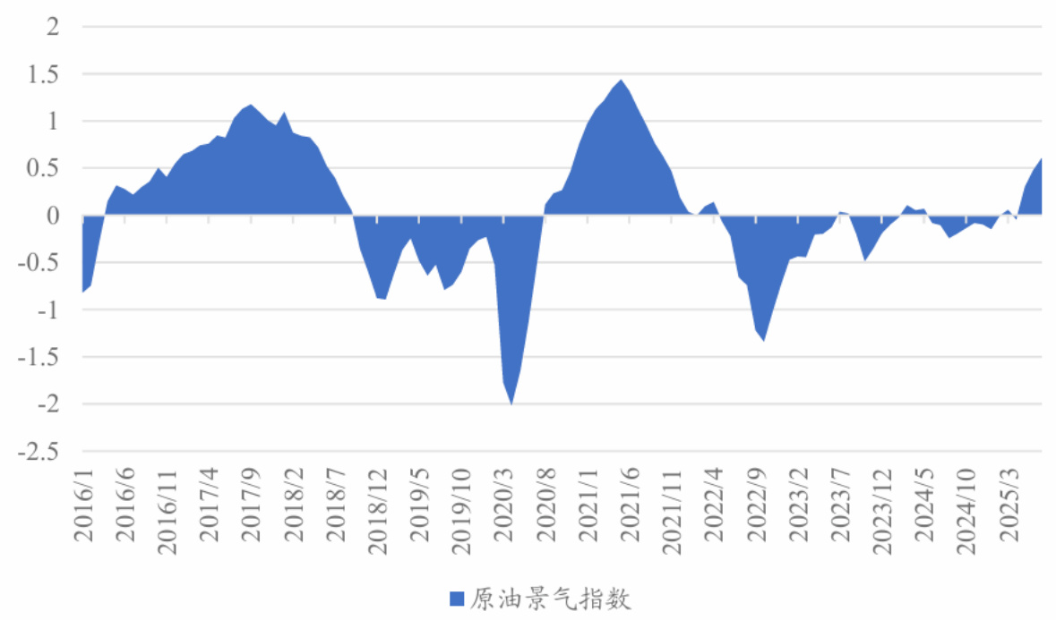 - 原油景气指数回升,宏观风险缓解和通胀预期推升油价中枢,继续看多原油。