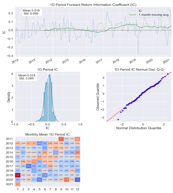- 全周期(2012—2021)IC平均值约0.018,标准差0.095,表现有限。