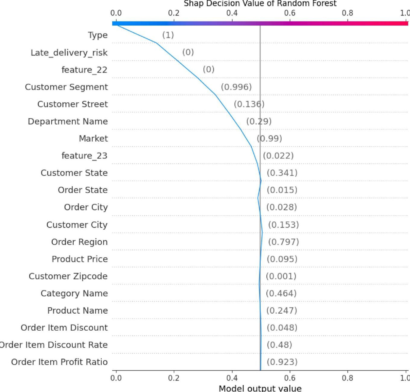 - SHAP决策图和力图直观展示单个样本的特征影响,体现“Type”、“Latedeliveryrisk”等多因子整合影响模型输出。